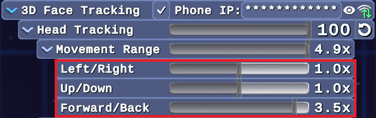 - Added three new sliders under 3D-Face Tracking/Head Tracking/Movement Range: Left/Right, Up/Down and Forward/Back that let you customize the range of movement for each axis: